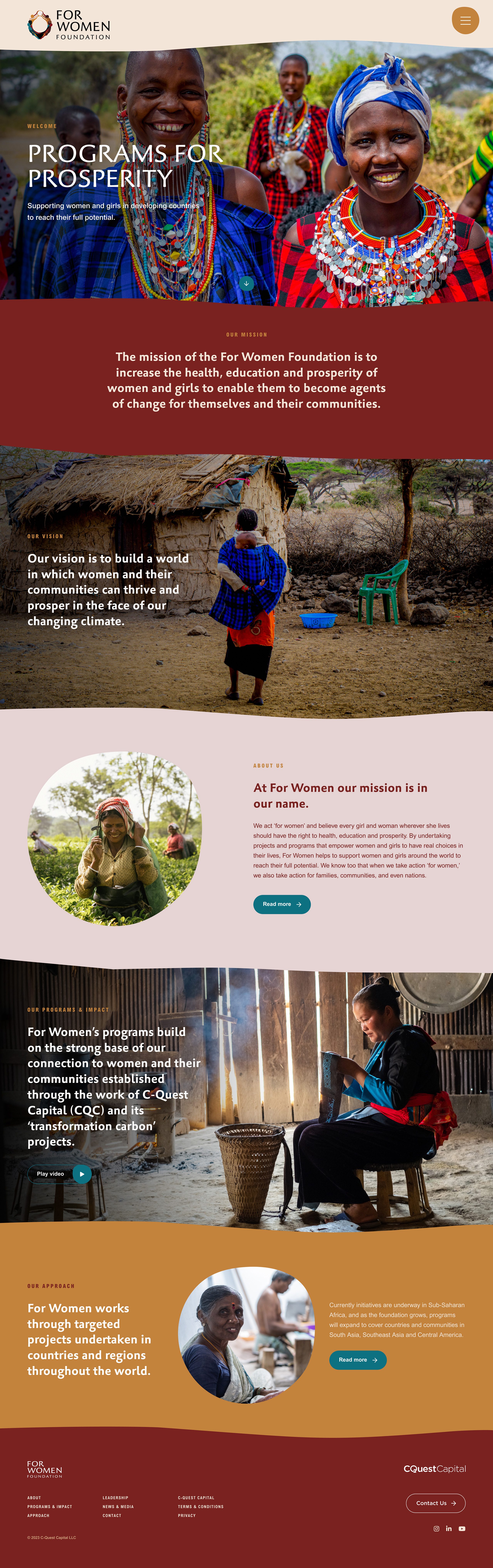 For Women runs programs, supporting women and girls in developing countries to reach their full potential. Website design and build with WordPress CMS integration for our client C-Quest Capital.